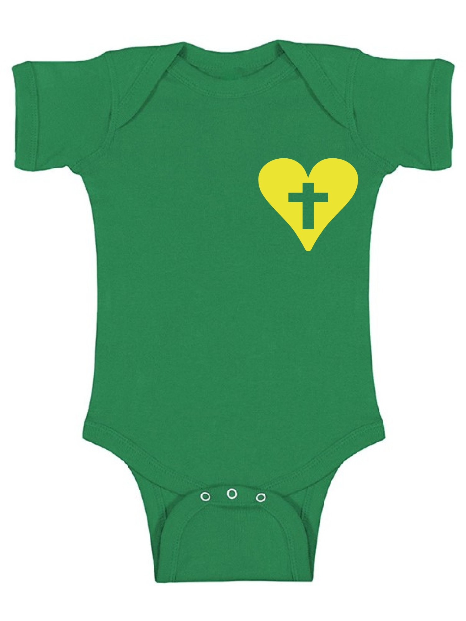 Awkward Styles Yellow Heart Cross Baby Bodysuit Short Sleeve Tops For Newborn Baby Christian Clothes For Baby Boys Christian Bodysuits For Baby Girls