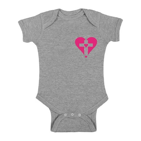 Awkward Styles Pink Heart Cross Baby Bodysuit Short Sleeve