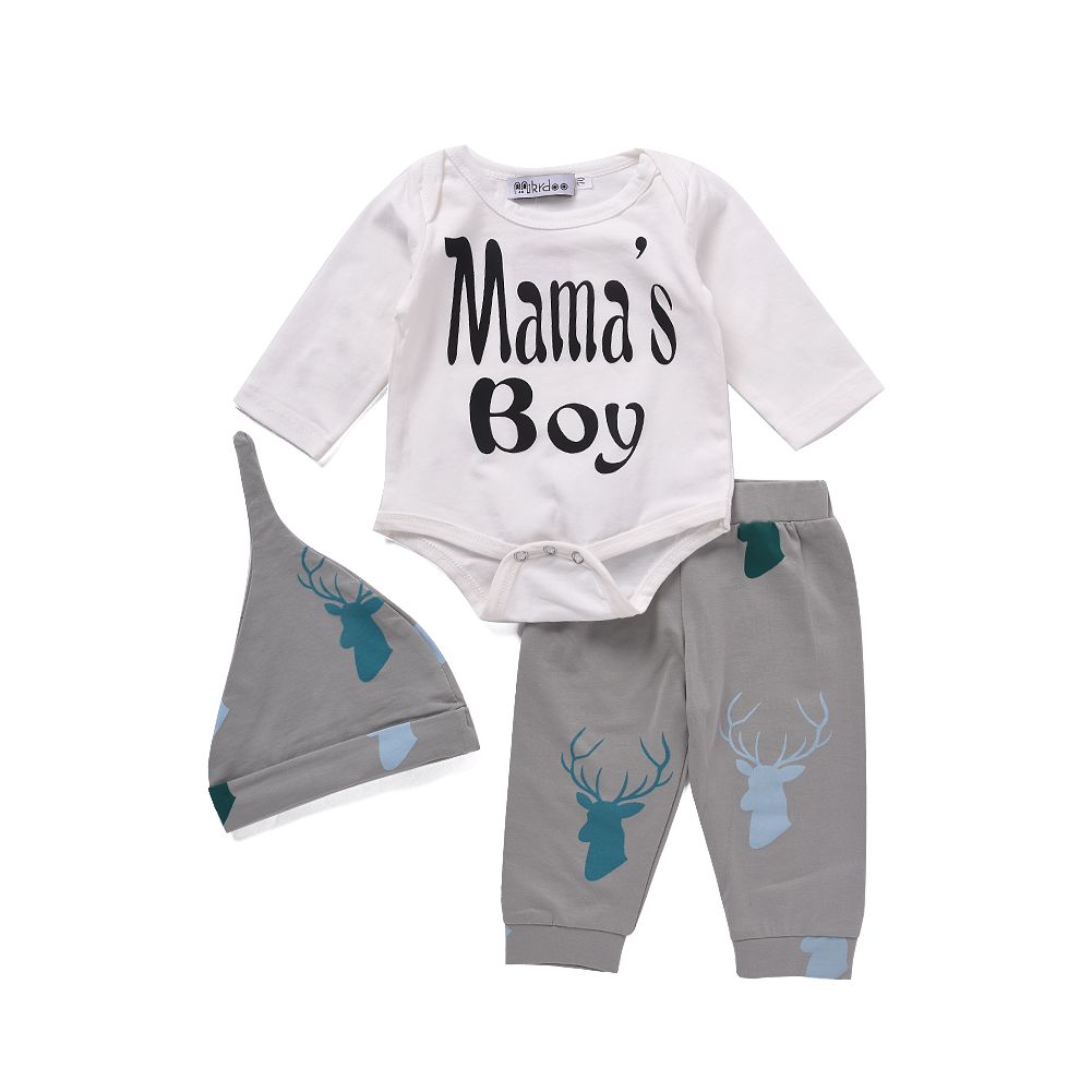 Mikrdoo Christmas Baby Newborn Clothes Kids Letter Mama S Boy Long Sleeve Romper Deer Pants Hat 3pcs Toddler Tracksuit Infant Clothing Suit
