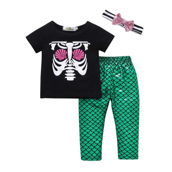 Ins Summer Newborn Outfits Infant Girl Clothes Skull Mermaid Girls Suits T Shirt Bow Headbands Leggings Baby Girl Clothes A1831 Uk 2019 From
