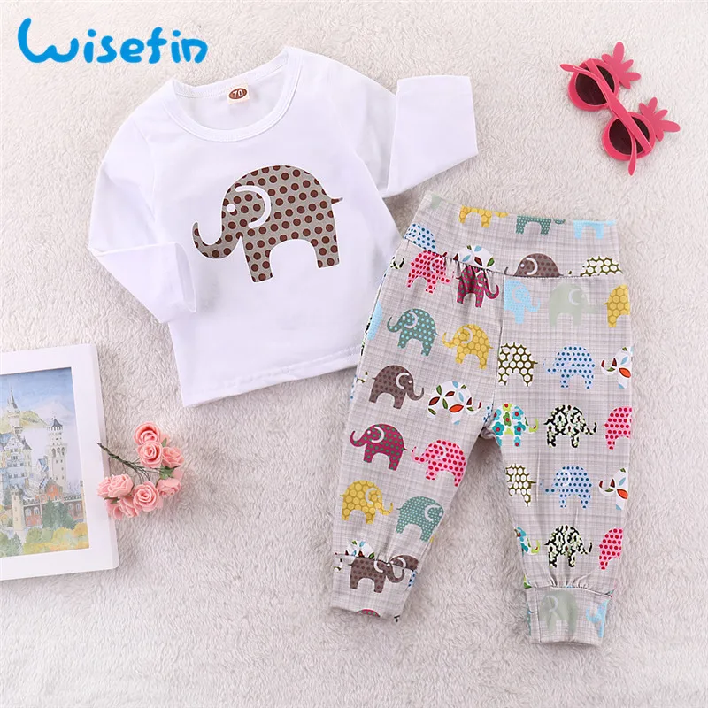 Baby Girl Clothes Newborn Elephant Printed Baby Boys Clothing Set Cotton Soft Baby Clothes 2pcs Set T Shirt Pants