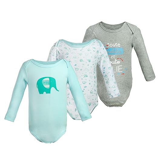 Cotton Fairy Newborn Unisex Baby Romper 3 Pack Elephant Slogan Print Long Sleeve Infant Summer Clothes Set