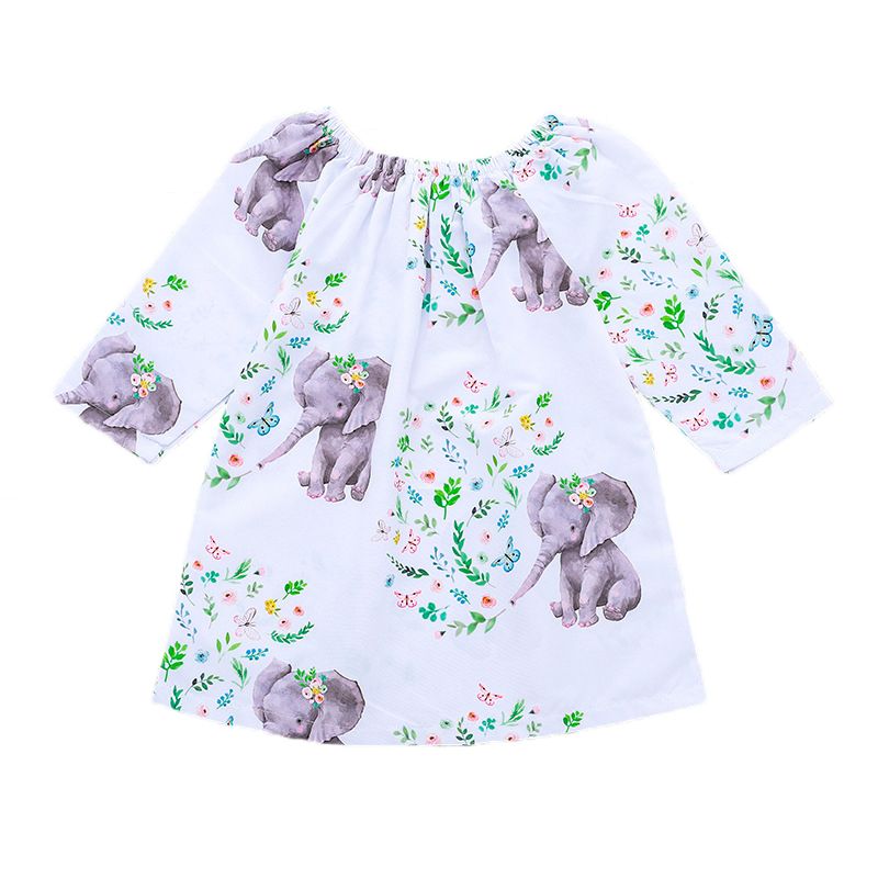 2019 Baby Girl Cartoon Dresses Newborn Baby Girl Clothes Long Sleeves Princess Dress Toddler Garland Elephant Cartoon Skirt Printing 19 From Bossbaby