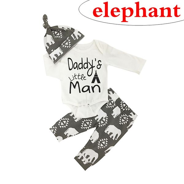 2019 Newborn Baby Boys Clothes Set Elephant Romper Daddy S Little Man Tops Long Pants Hat Outfits Set Kids Boy Cotton Casual Clothing From Melee
