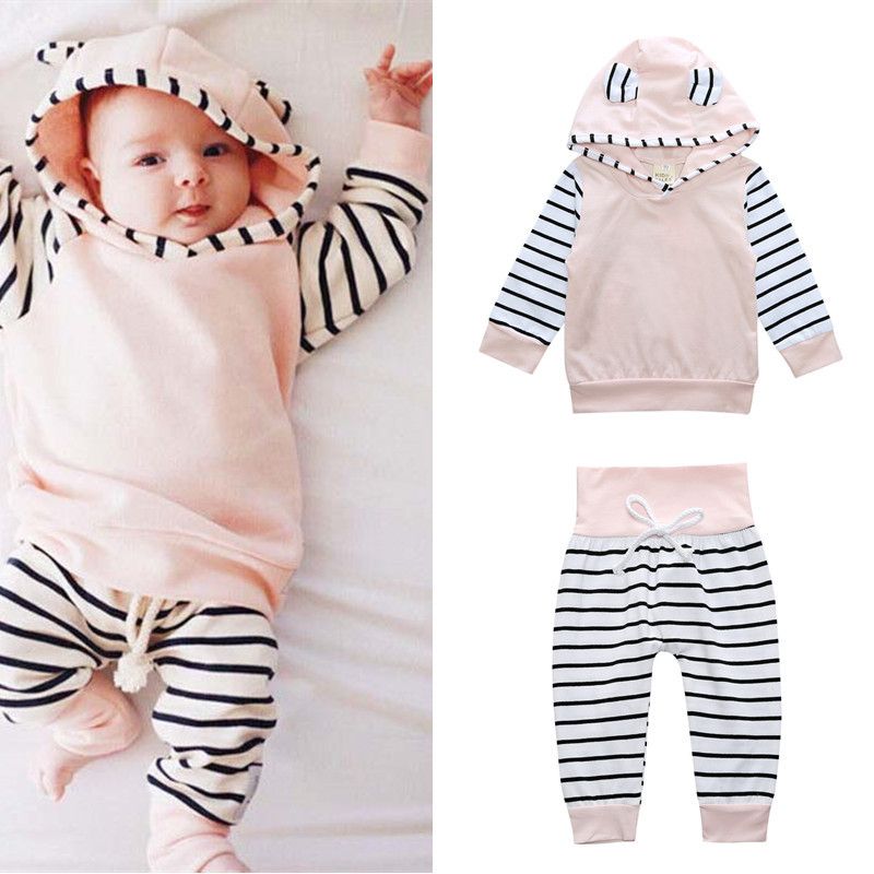2019 2017 Spring Baby Girl Clothes Ear Hoodied Tops Striped Pants Fashion Sets For Girls Newborn Cotton Pink Outfits From Happy1418 32 31