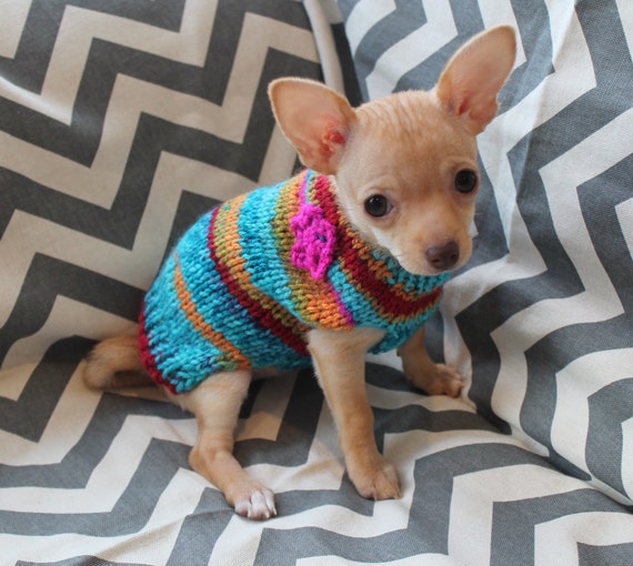 Dog Puppy Kitten Sweater Hand Knit Teeny Tiny Rustic With Crochet Flower Xxxs Xxs 1 To 2 Lbs For Teacup Toy Breed Puppy Newborn To 2 Pounds