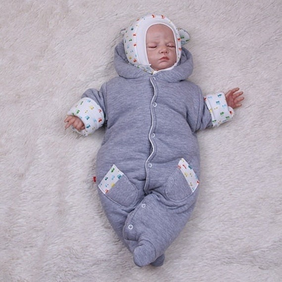 Newborn Winter Hoodie Romper And Hat Warm Romper Spring Romper Baby Outwear Baby Boy Clothes Gray Romper Babyboy Coming Home Outfit