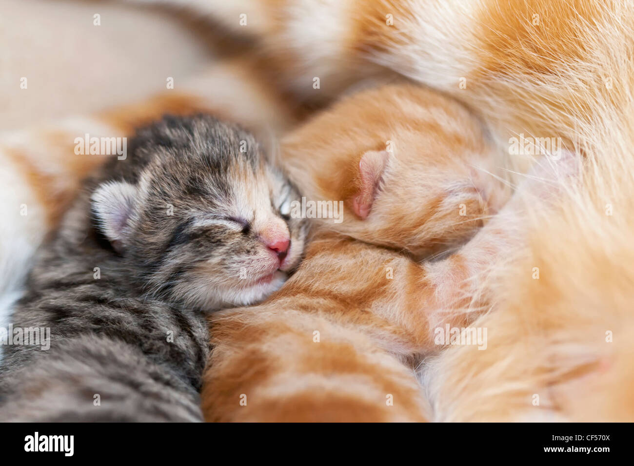 Kittens Sleeping Striped Newborn Eyes Closed Stock Photo