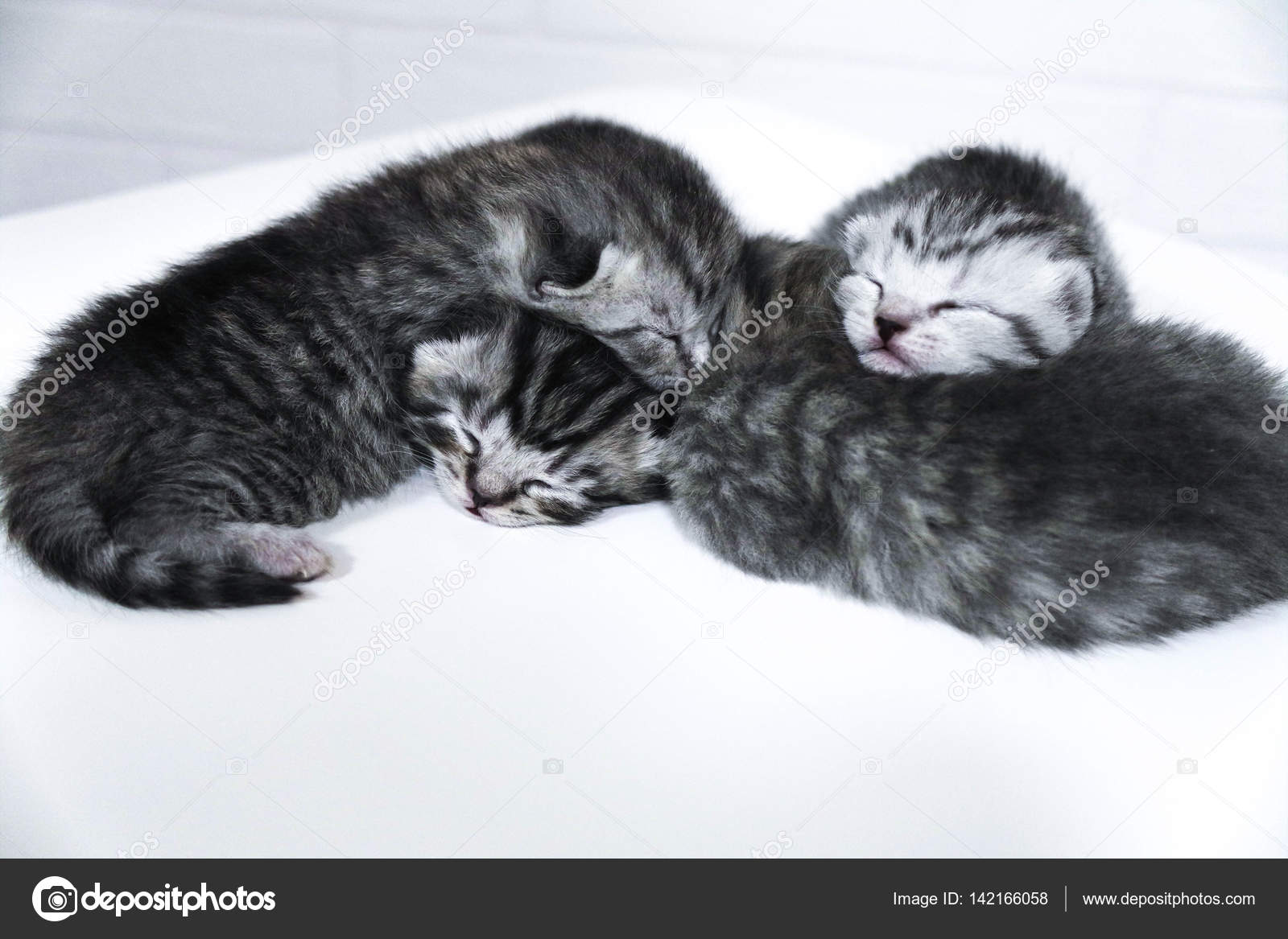 Blind Kittens With Closed Eyes Cute Cats Are Lying Asleep Cute Tri Color Kitten Newborn Pet On A White Lifestyle Background