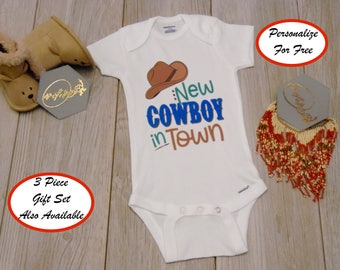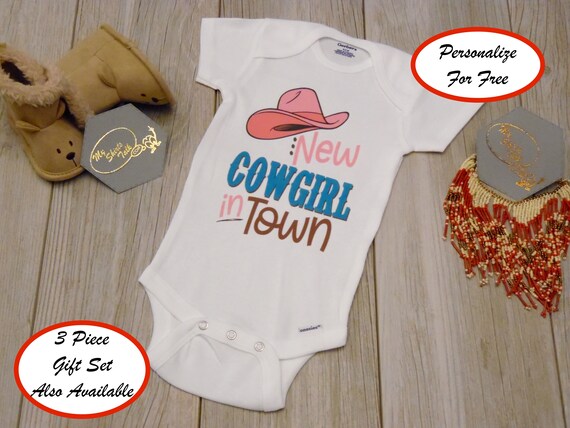 New Cowgirl In Town Baby Onesie Cowgirl Western Onesie Boho Onesie Custom Baby Gift Baby Clothes Personalized Monogramed Onesie