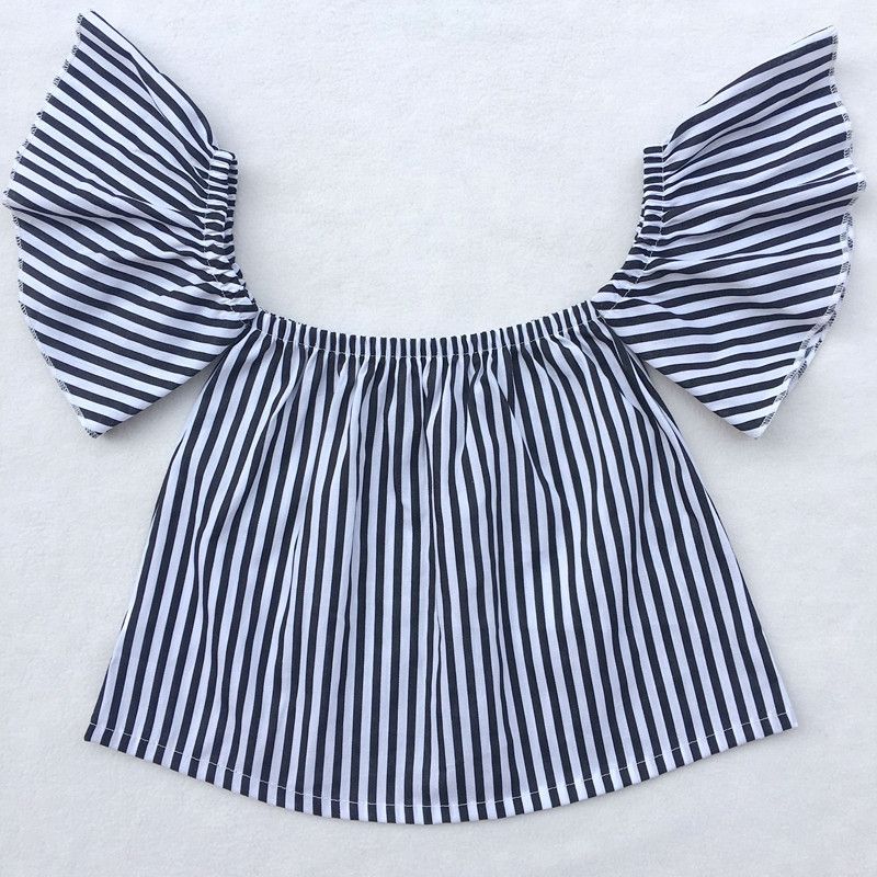 2019 Western Fashion Baby Clothes Lemon Printed Girls Top Off Collar Cute Off Shoulder Girls Top Clothes Geometric Printed Girls T Shirt From