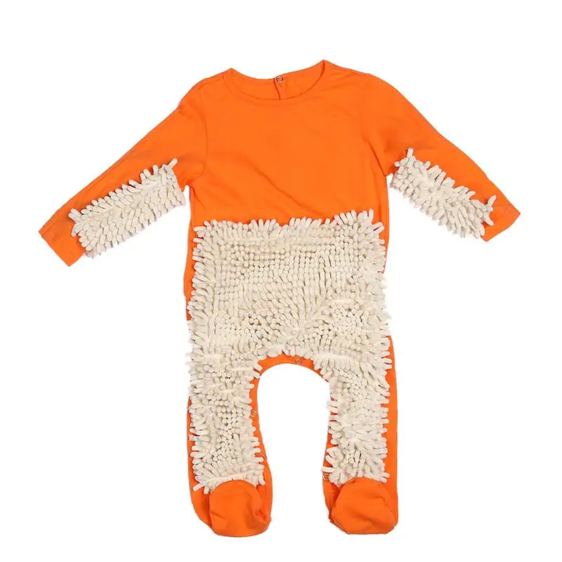Newborn Baby Mop Romper Outfit For Boys Girls Bebe Polishes Floors Cleaning Mop Suit Kids Crawls Baby Jumpsuit Long Sleeve