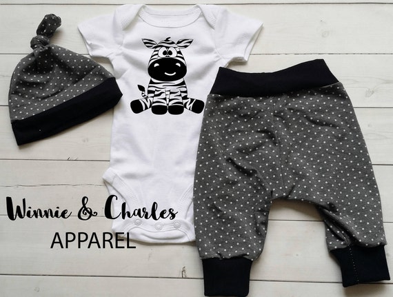 Zebra Bodysuit Newborn Outfit Baby Clothing Set Coming Home Outfit Personalized Baby Outfit Baby Hat Birthday Outfit Baby Leggings