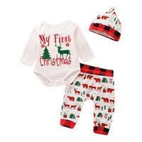 Christmas Baby Clothes Infant Boy Letter Romper Plaid Pants Hat 3pcs Set Check Newborn Girl Bodysuits Xmas Baby Clothing Dw4497