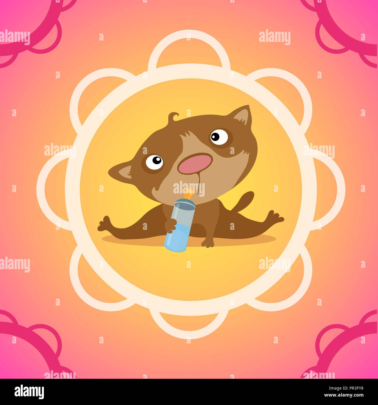 Cute Poster With A Newborn Kitten With A Bottle Of Baby Food