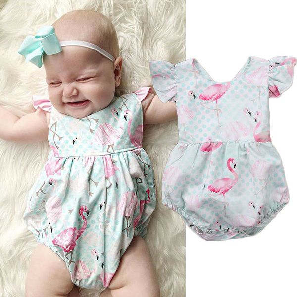 2019 Cute Flamingo Baby Girls Romper Newborn Infant Baby Girl Clothing Off Shoulder Jumpsuit Sunsuit Summer Baby Girl Clothes Outfits From