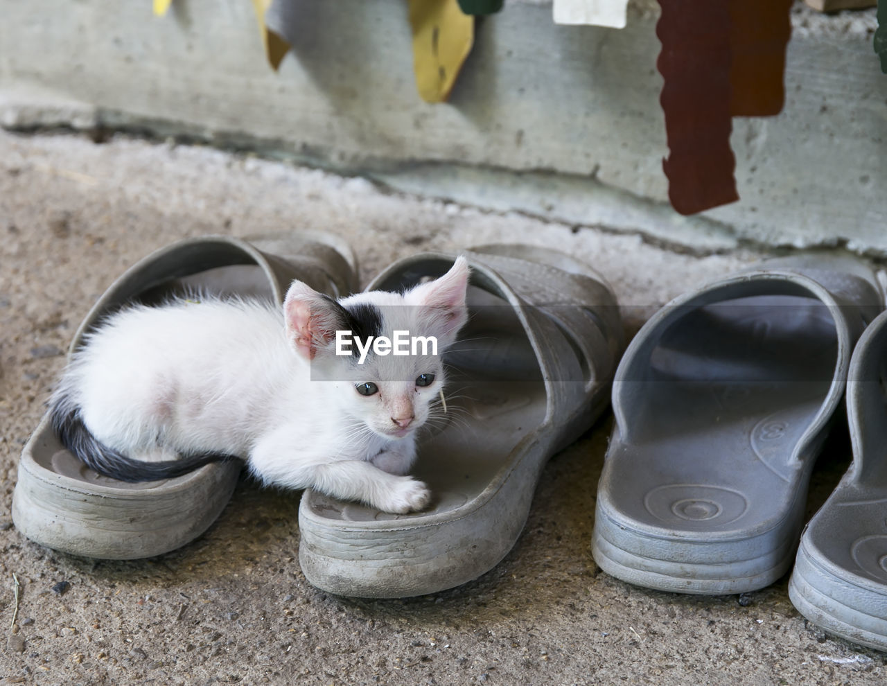Black And White Newborn Baby Kitten On The Slippers On Eyeem