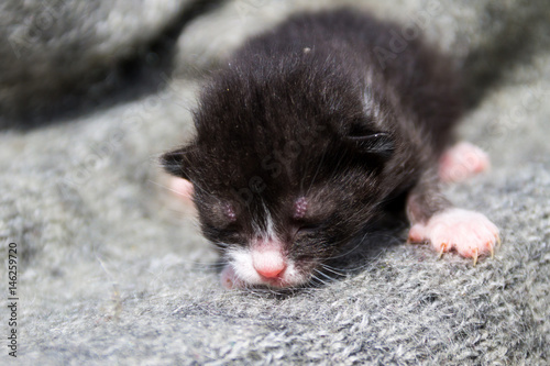 Newborn Kitten 6 Days Old Lying On A Carpet Stock Photo