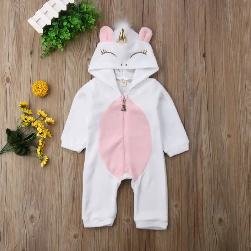2019 New Autumn Winter Newborn Baby Girl Clothes Cute 3d Unicorn Flannel Long Sleeve Zipper Warm Romper Jumpsuit Outfit Clothes