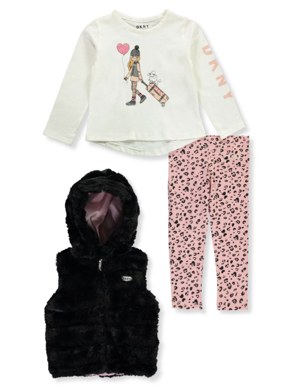 Details About Dkny Baby Girls Hooded Glam 3 Piece Leggings Set Outfit