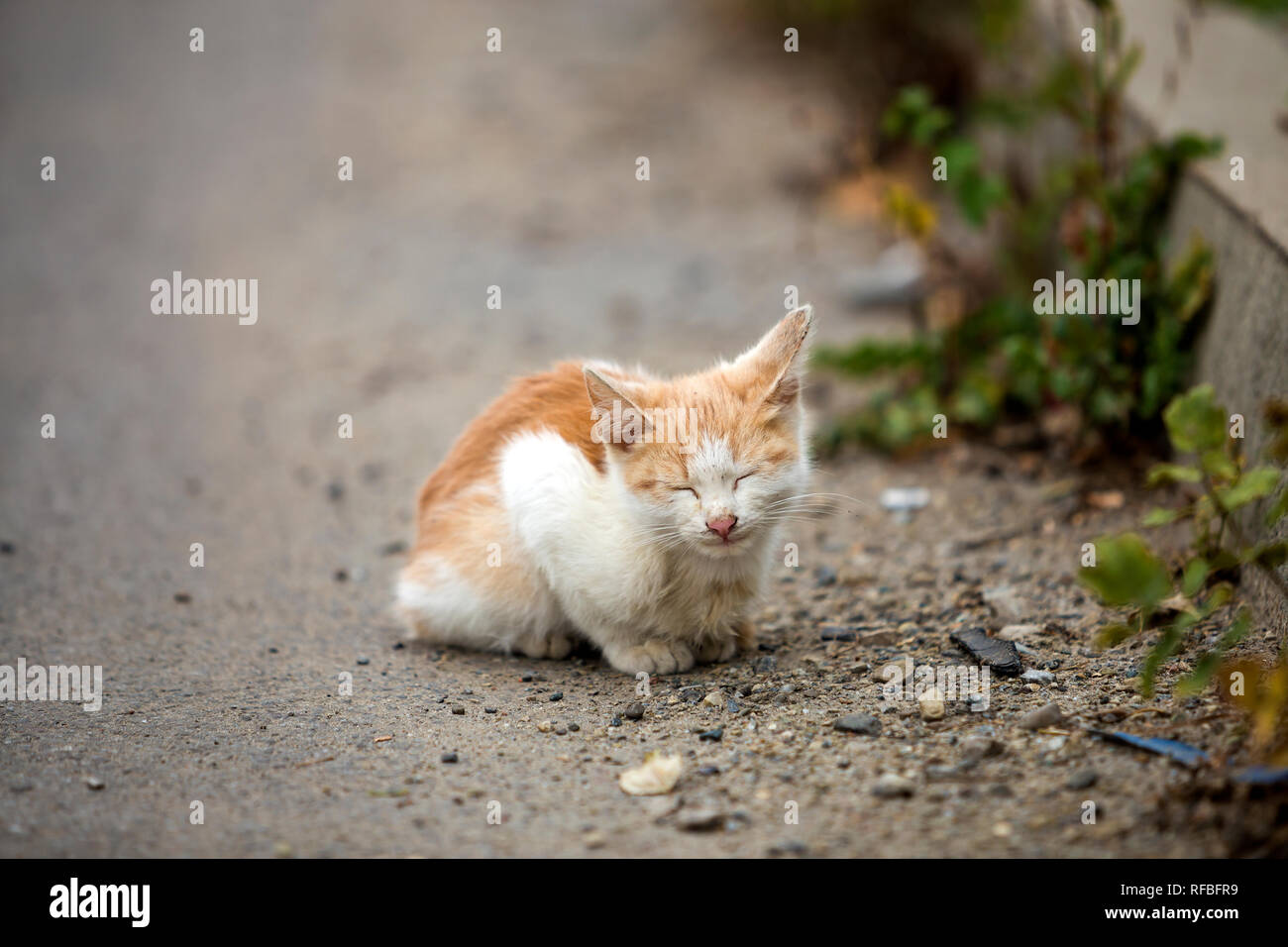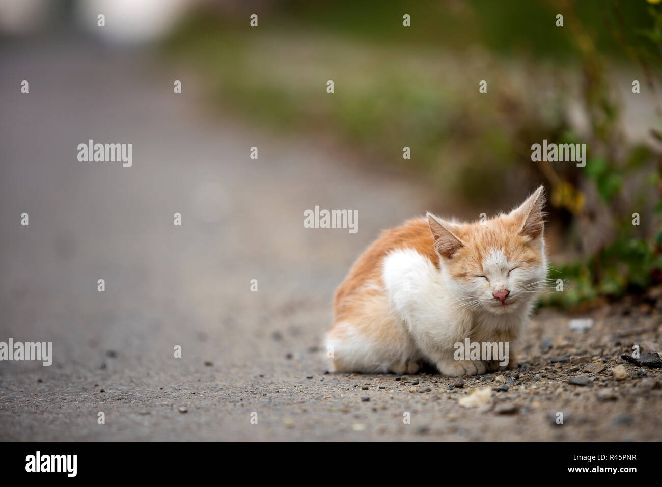 Portrait Of Cute Adorable Ginger Small White Young Cat