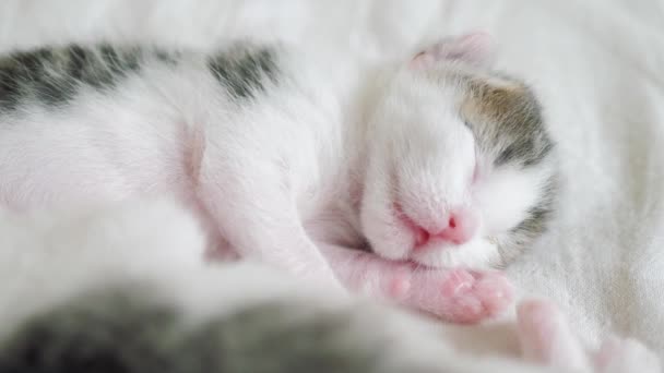 Little Cute Newborn Kitten Sleeping On The Bed Little Kitten Sniffs And Twitches In A Lifestyle Dream Tossing And Turning
