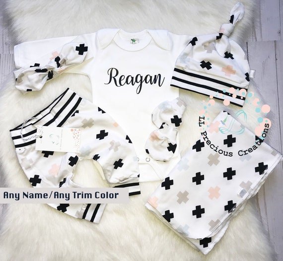 Coming Home Gender Neutral Outfit Personalized Baby Boy Girl Outfit Newborn Baby Girl Outfit Swaddle Blanket Baby Shower Gift Mittens