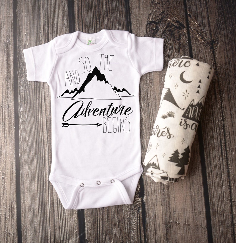 Newborn Gender Neutral Adventure Clothing Baby And So The Adventure Begins Bodysuit Cute Outdoor Sleeper Unique Gifts For New Moms Shower