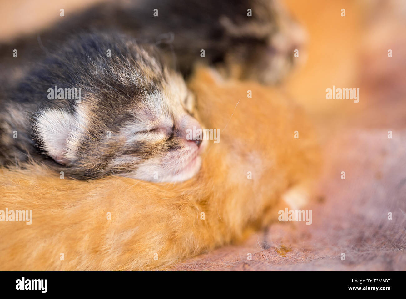 Germany Newborn Kittens Sleeping On Carpet Close Up Stock