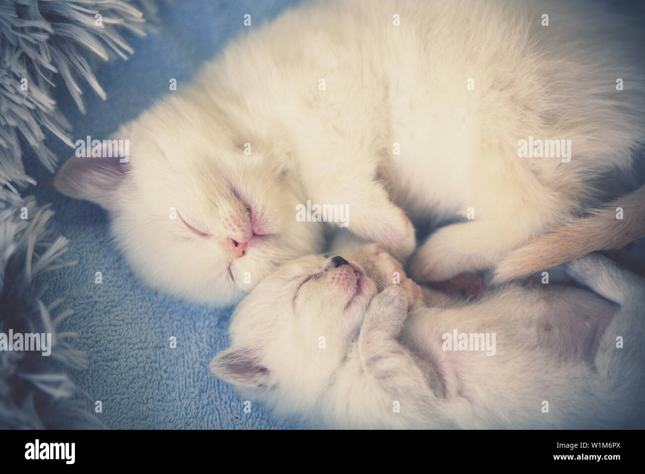 Closeup Of Two Adorable Newborn Kittens Sleeping