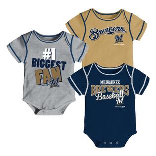 Mlb Newborn Infant Boys 3 Pack Bodysuits Milwaukee Brewers