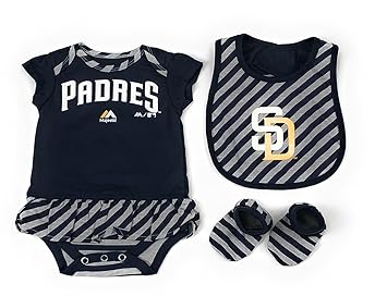 Outerstuff San Diego Padres Mlb Majestic Newborn Pennant Creeper Bib Bootie Set