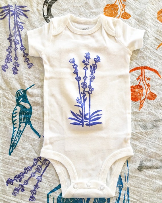 Baby Onesie Lavender Baby Clothes Newborn Baby Organic Cotton Printed Onesie Cute Baby Onesie Botanic Baby Clothes White Cotton Onesie