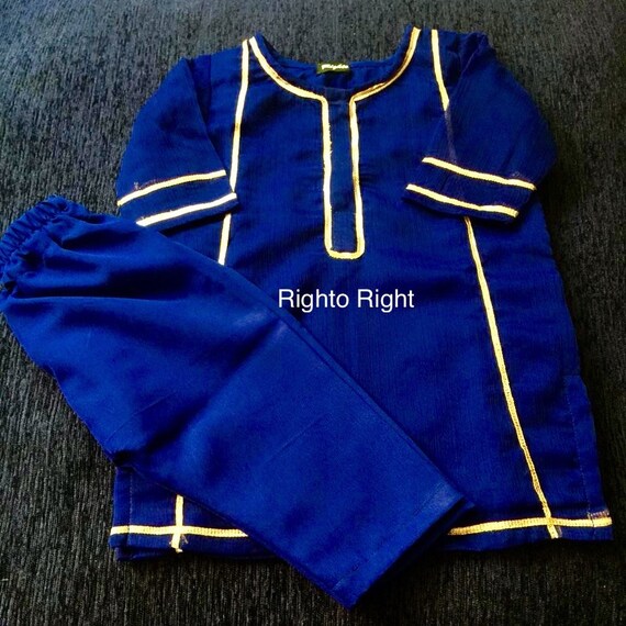 Baby Girl Salwar Pure Chiffon Kurti With Pajama Blue Gold Mother Daughter Same Outfits Pakistani Kids Clothes Kids Eid Dress