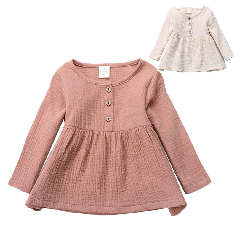 New Spring Antumn Solid Baby Princess Dress Cute Long Sleeve Cotton And Linen Girl Dress Kids Bottom Under Coat Dress J190426