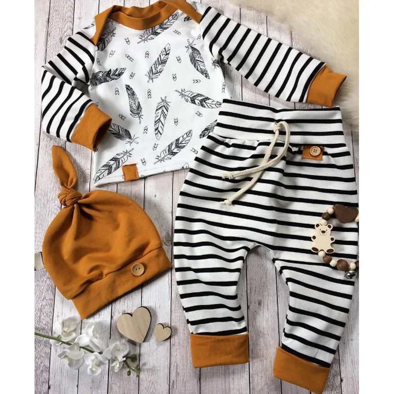 Baby Boy Clothes Fashion Cotton Long Sleeved T Shirt Pants Caps Newborn Autumn Baby Girl Clothing Infant 3pcs Suit