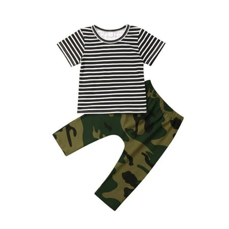 Newborn Baby Boy Girl Camo T Shirt Tops Pants Outfits Set Clothes 0 24m