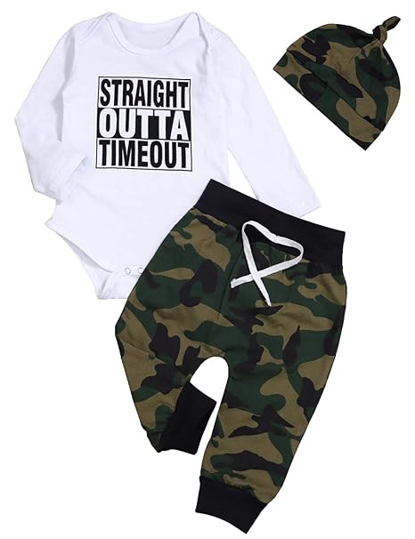 Details About 3pcs Newborn Baby Boy Top Romper Bodysuit Jumpsuit Pants Camo Outfit Clothes Set