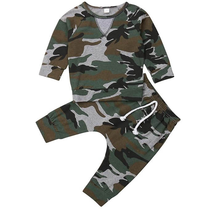 Camo Newborn Baby Boy Girls Camo T Shirt Tops Long Pants Outfits Set Clothes 2pcs