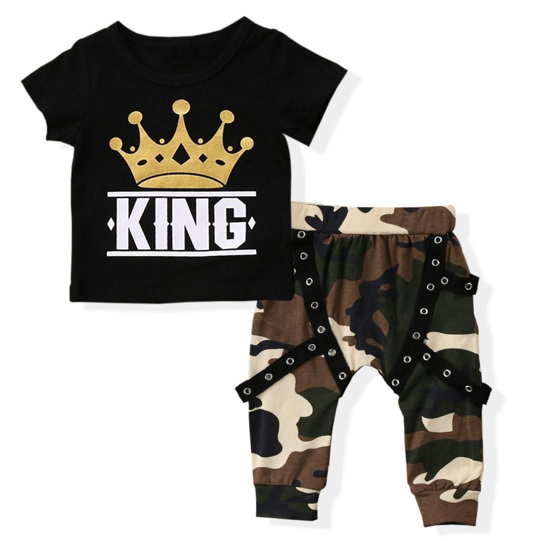 2019 Oklady 2019 Summer Trendy Newborn Camo Clothes Set Toddler Kid Crown Print King Baby Boy Tshirt Top Camouflage Harem Pants Set From Vingner