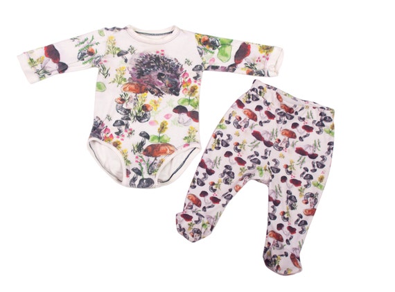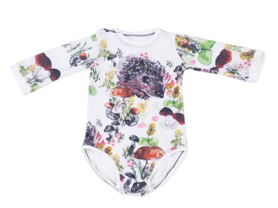 Newborn Clothes Hedgehog Print Organic Baby Clothes Gift For New Mom Gift For New Baby Organic Baby Onesie Baby Gift Long Sleeve