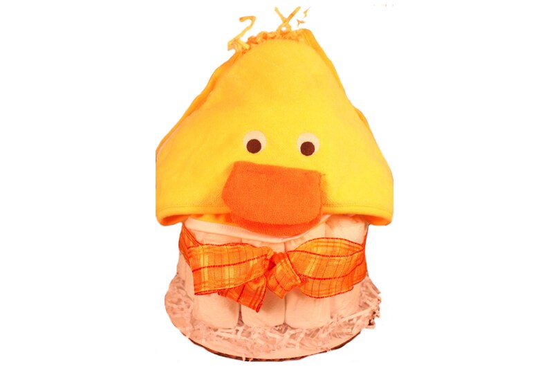 Duck Hooded Towel Diaper Cake Spring Baby Shower Gift Gender Neutral Yellow And Orange Baby Gift