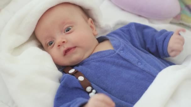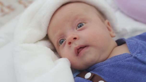 Newborn Baby Lying Quietly In Bed Stock Footage Video Of