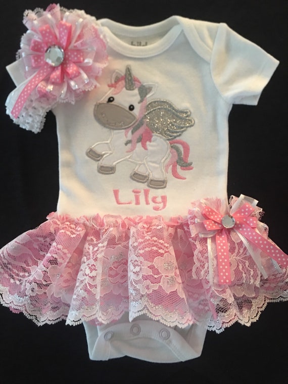 Newborn Baby Girl Monogrammed Bodysuit Appliqued Unicorn With Wings Baby Girl Lace Tutu Baby Girl Clothes Baby Girl Headband Coming Home Pic