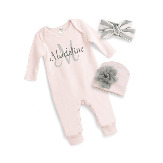Personalized Newborn Girl Outfit Custom Newborn Girl Coming Home Outfit Baby Girl Name Romper Monogram Baby Monogrammed Clothes Tesababe