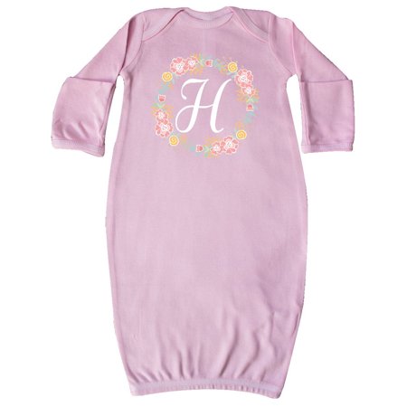 H Monogram Alphabet Letter Rose Floral Wreath Newborn Layette Pink Newborn