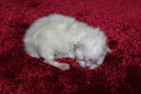 Close Up Of Cute Newborn Persian Kitten Lying On White Fabric