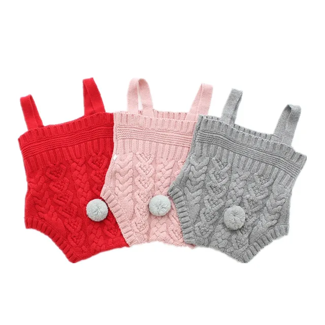 Us 14 26 31 Off Baby Knitted Clothes Newborn Baby Girls Romper Long Sleeve Woolen Pompom Infant Jumpsuit For Girls Boys Overalls Clothes In Rompers