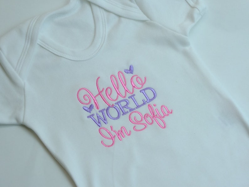 Personalised Hello World Baby Grow Birth Announcement New Baby Gift