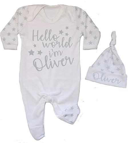 Personalised Hello World I M Name Contrast Baby Romper Babygrow New Baby Gifts Newborn Baby Gifts Personalised Babywear Hospital Outfit